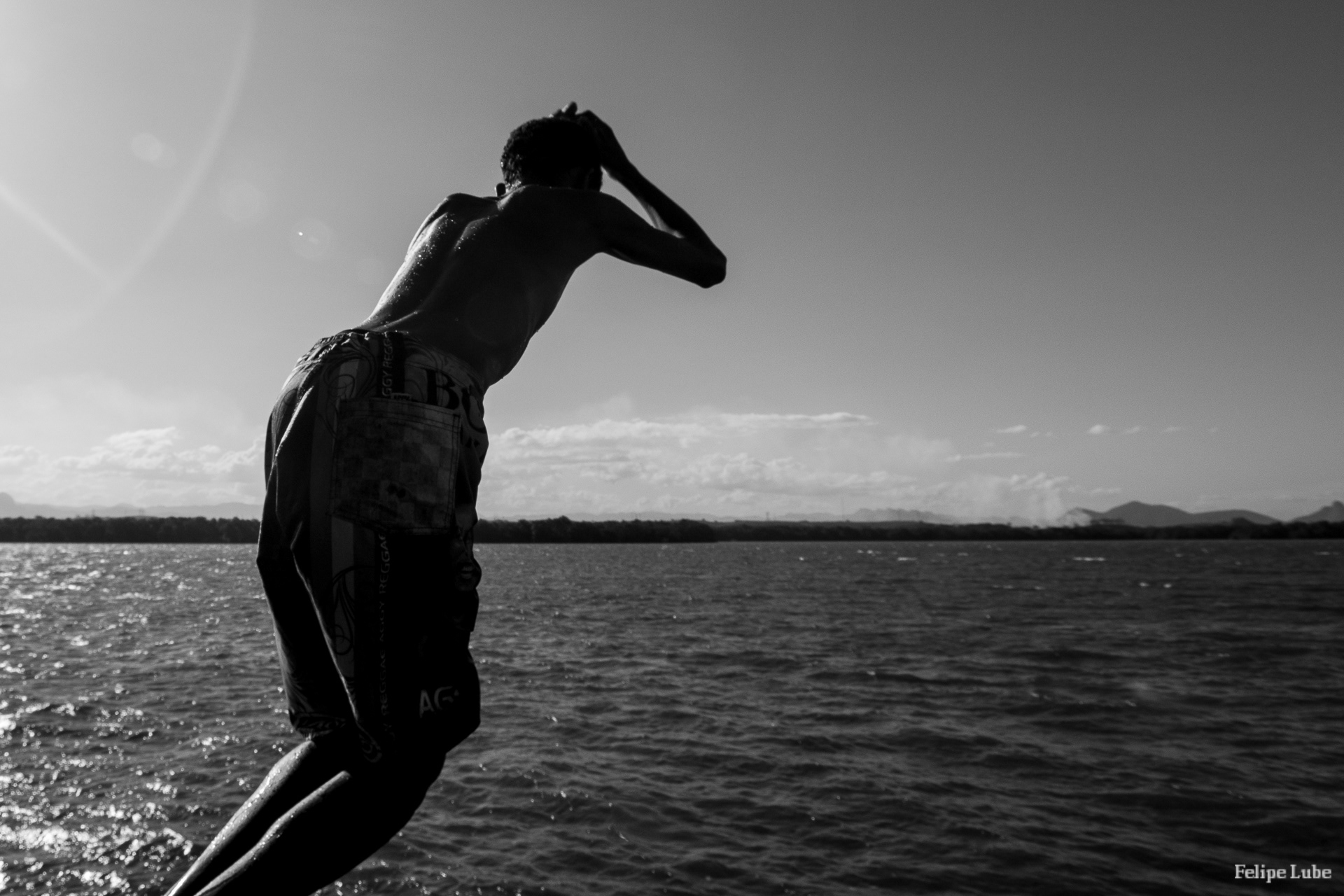 Photography of boys diving in Ilha das Caieiras.